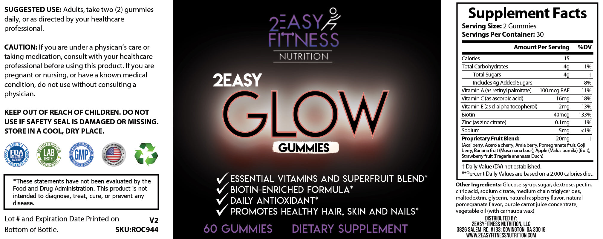 2EasyGLOW™ Gummies are your delicious daily dose of antioxidant-rich superfruits and essential vitamins designed to support healthy skin, hair, nails and overall wellness from within.