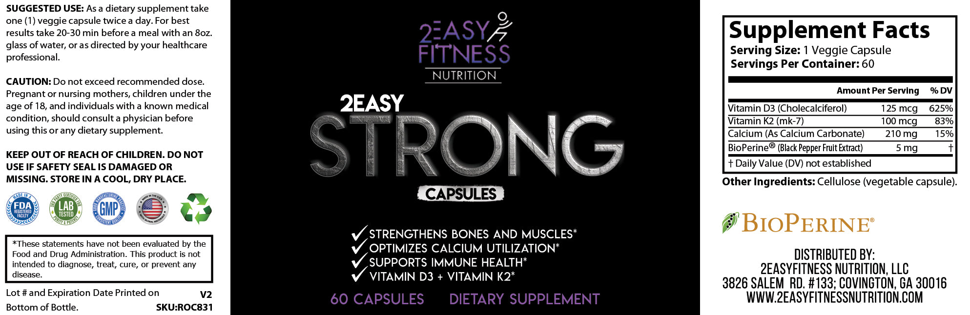 2EasyStrong™: Vitamin D3 + K2 to support bone strength, muscle health, immune function and optimal calcium utilization.